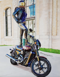 If that’s not enough to impress you, Joanna’s motorcycle illustrations have been purchased world-wide and her Woman Empowered motorcycle art series has been featured in on-line art and motorcycle magazines.