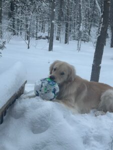He really likes pushing a soccer ball down the snow mound and “sledding” after it.
